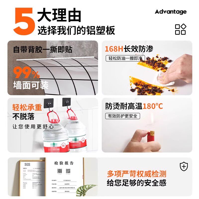 推荐理由:厨房墙面防油铝塑板防水耐高温仿瓷砖墙贴墙围护墙板自粘加厚墙纸