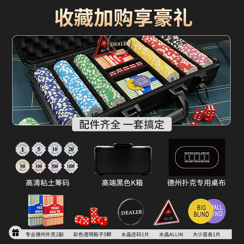 猎富德州扑克筹码套装麻将棋牌室专用磨砂筹码币高端铝箱德扑桌垫
