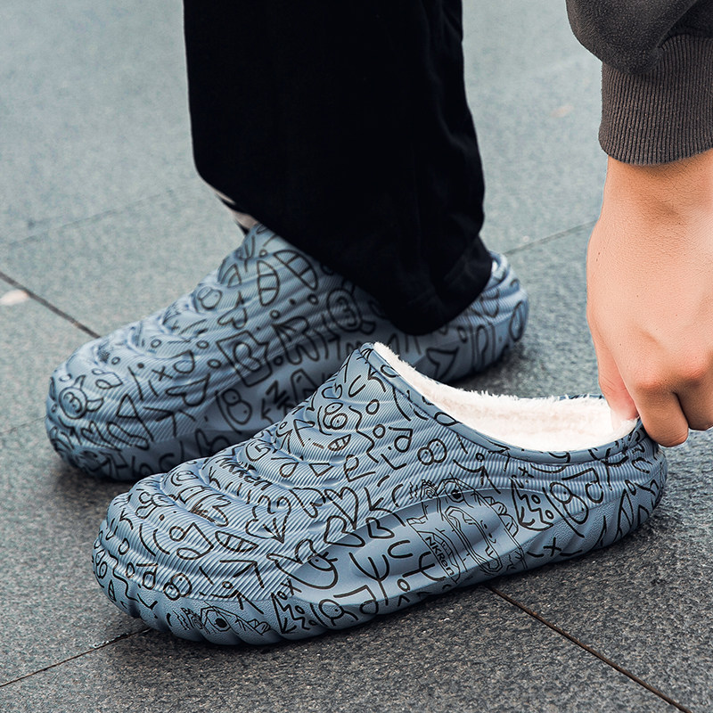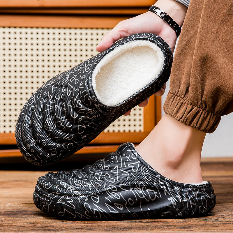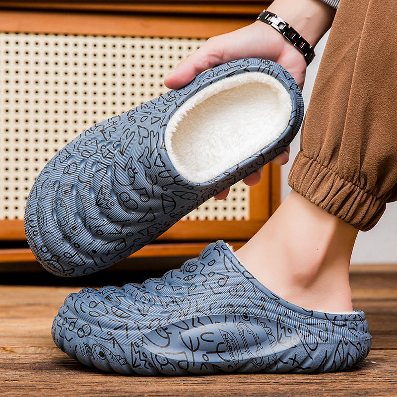 棉拖鞋男冬季加绒保暖皮毛一体包头棉拖情侣休闲居家室内大码棉鞋
