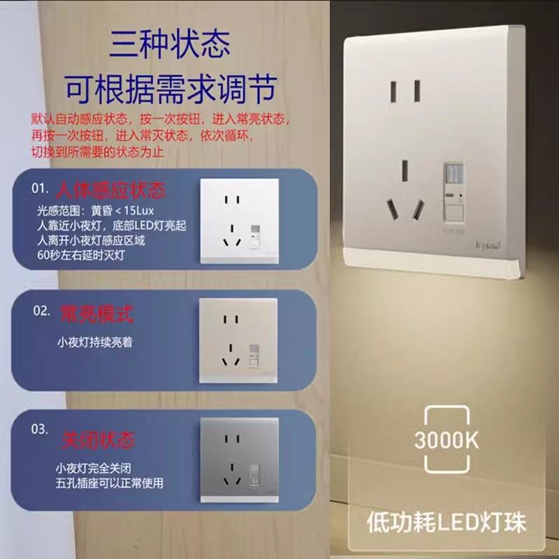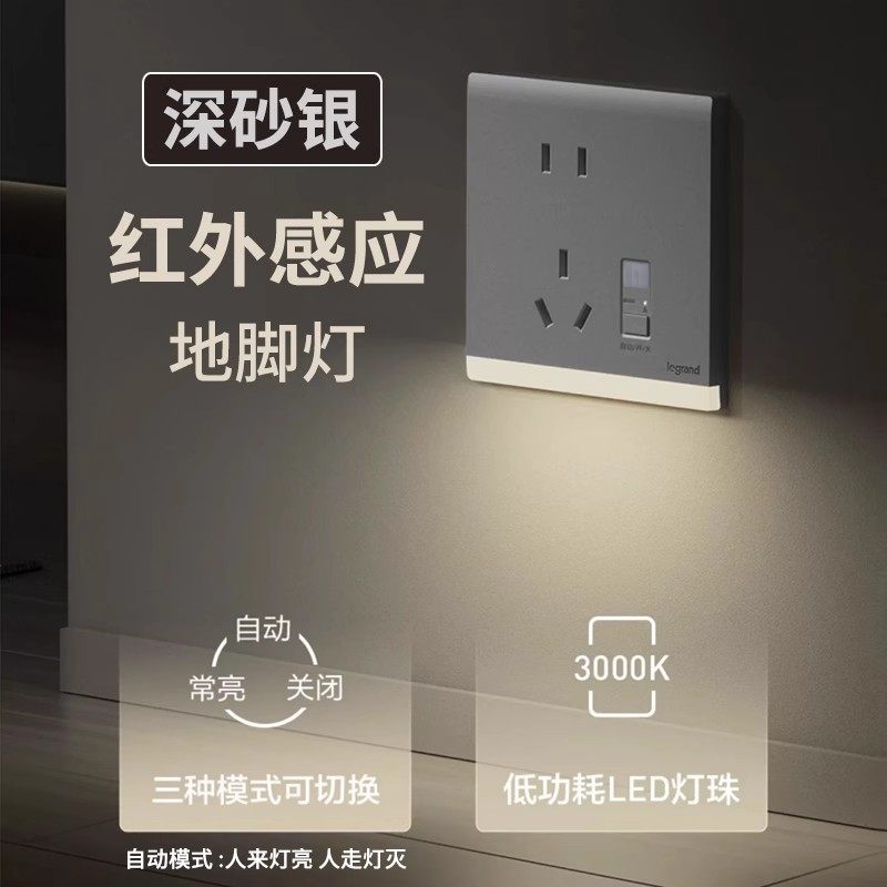 罗格朗开关插座地脚灯LED小夜灯嵌入式人体感应家用过道壁脚灯86