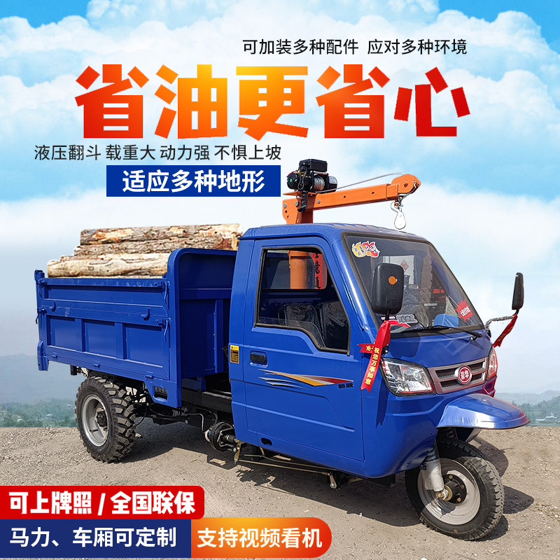 柴油三轮车农用爬坡运输车大马力自卸全封闭驾驶室农用三轮车拉货