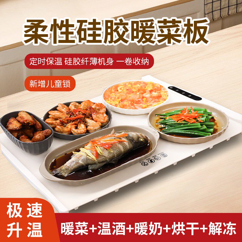 柔性暖菜板加大款可调保温板卷轴折叠式热菜板家用多功能餐桌垫板