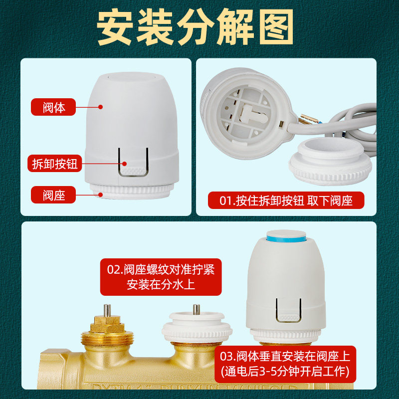 推荐理由:地暖分水器电热执行器常闭型地热集分水器阀门常开电磁温控阀开关