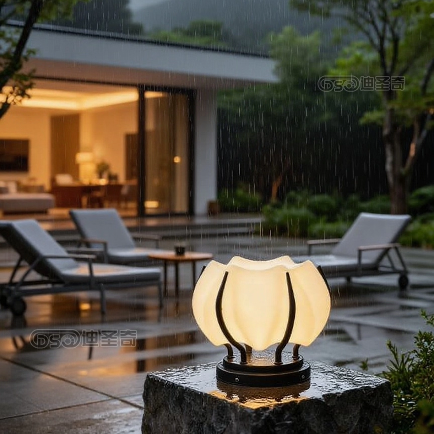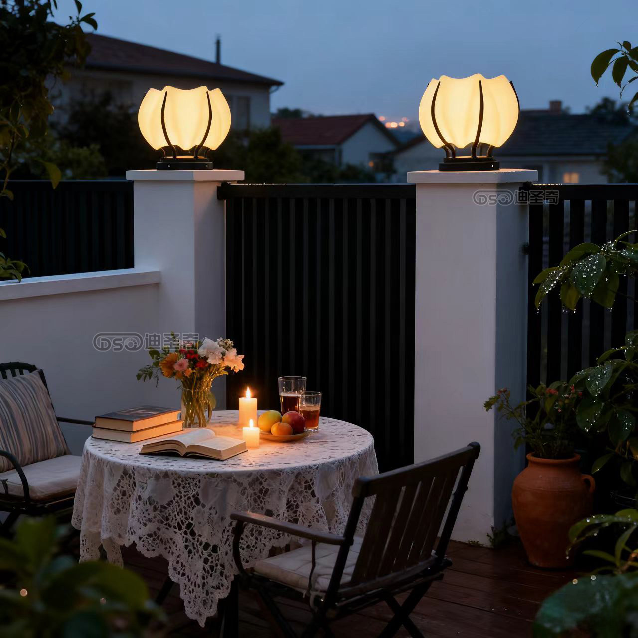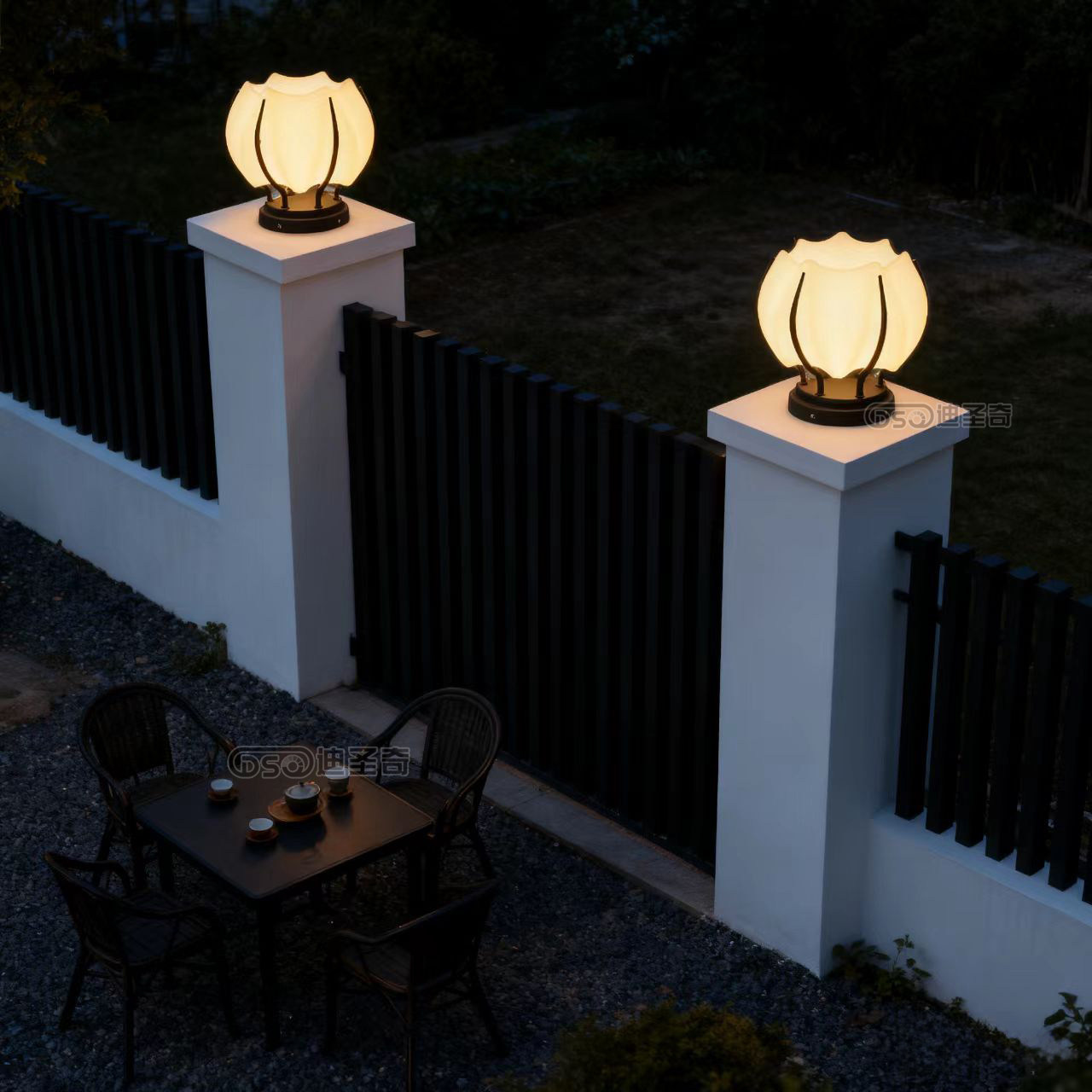 大门灯门柱灯户外太阳能院墙莲花灯花园柱头灯农村别墅庭院立柱灯