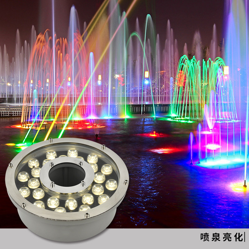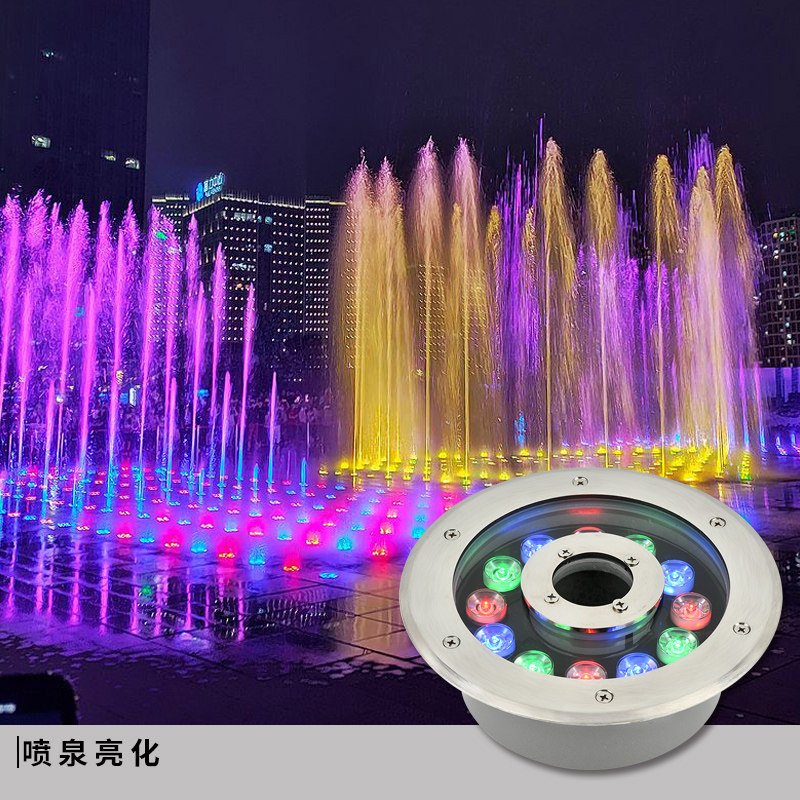 涌泉灯led防水水下灯鱼池灯中孔旱喷景观水底灯12V24V七彩喷泉灯