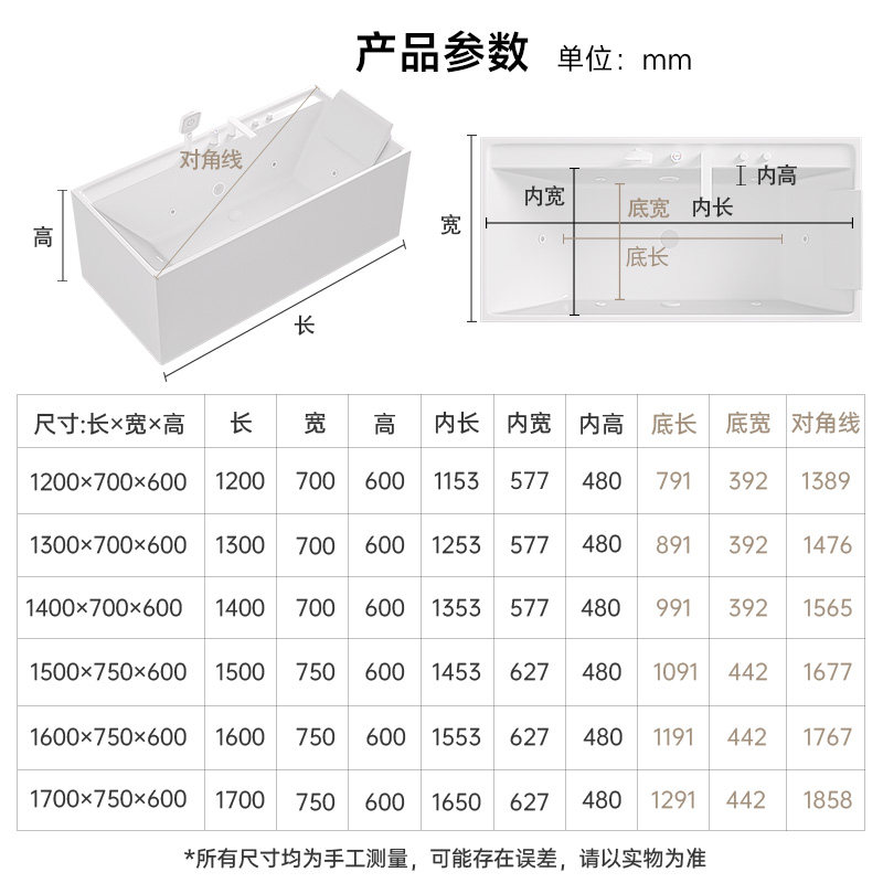推荐理由:浪鲸卫浴 浴缸家用小户型亚克力方形浴缸卫生间独立按摩0340定制