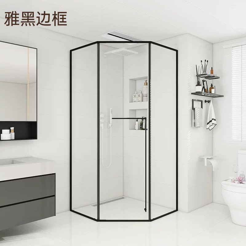 定制浴室钻石型淋浴房家用 304不锈钢整体隔断简易卫生间玻璃浴屏