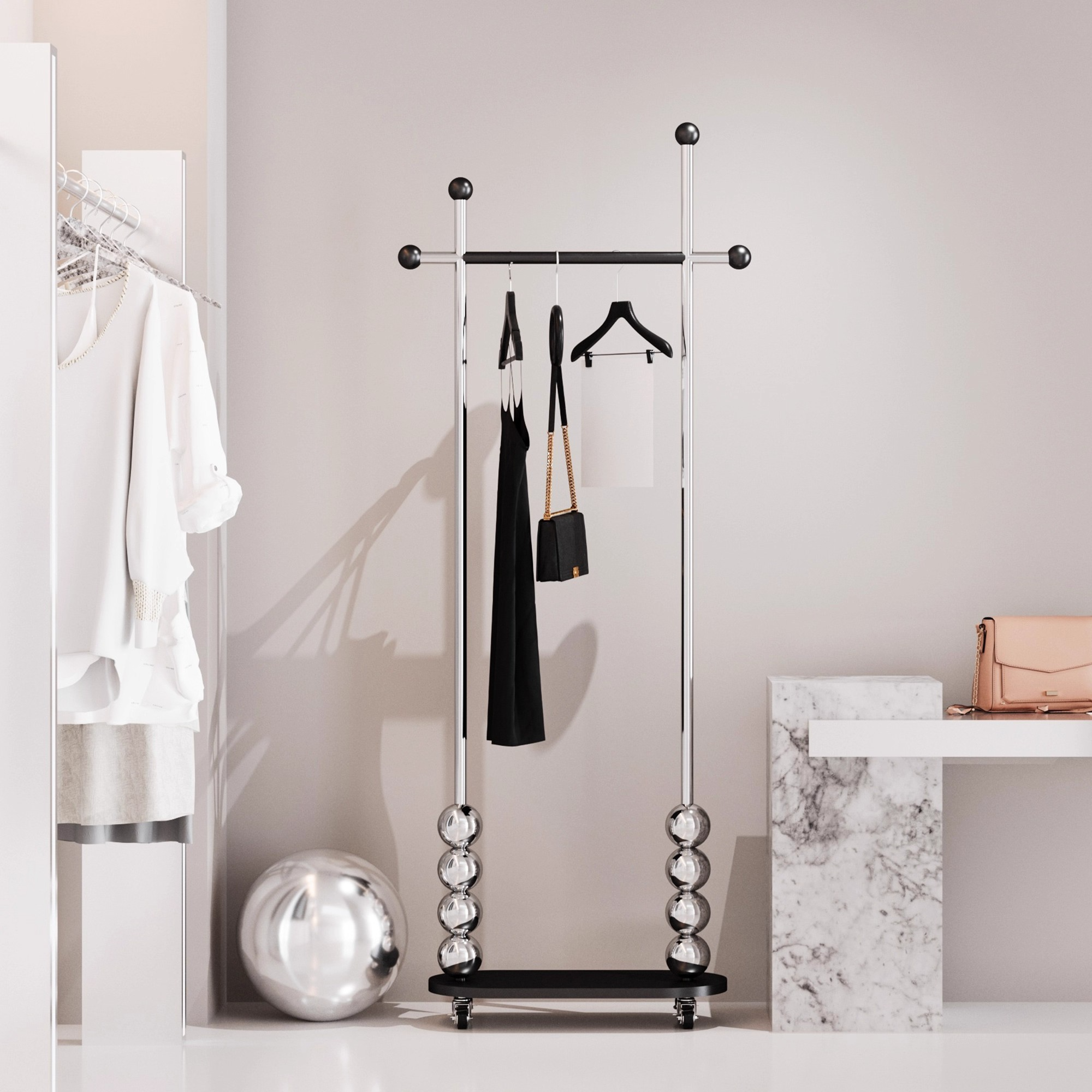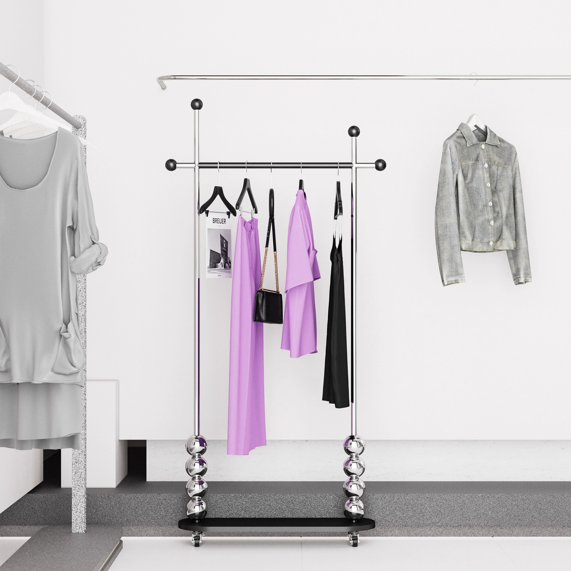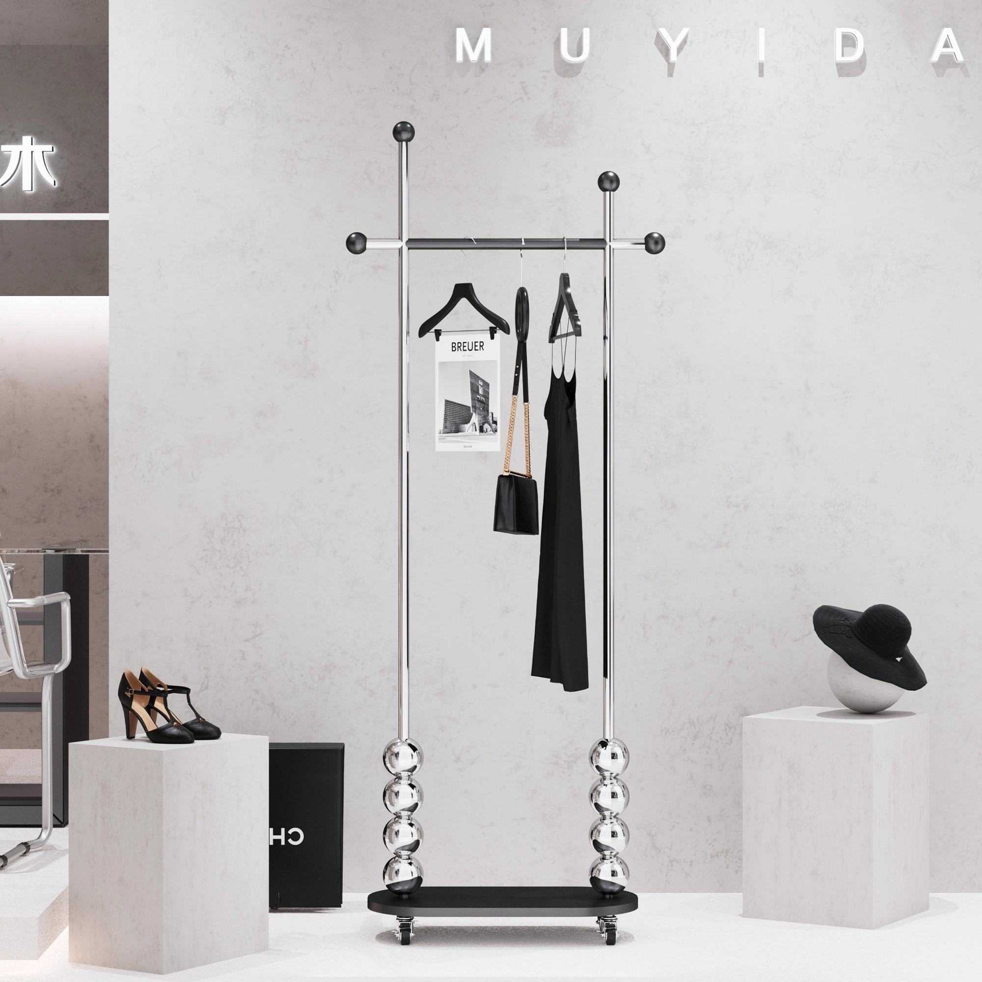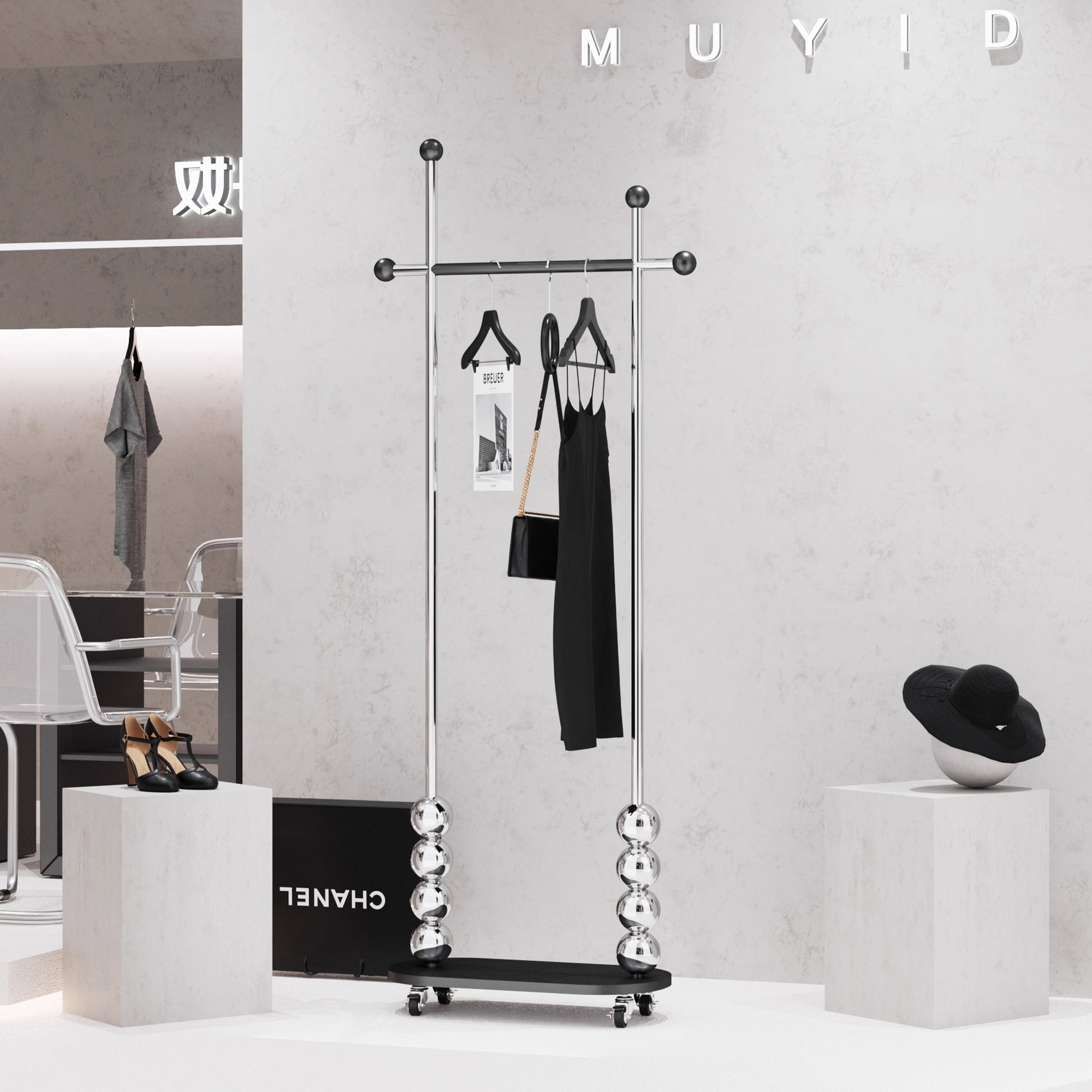服装店展示架陈列不锈钢落地式衣架女装店专用货架移动挂衣架带轮