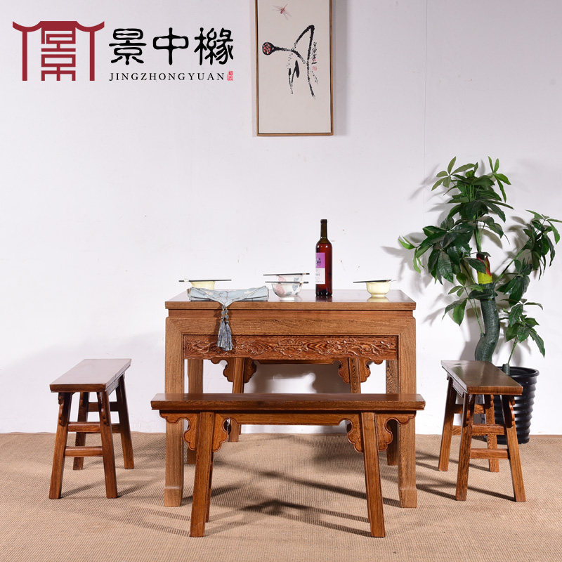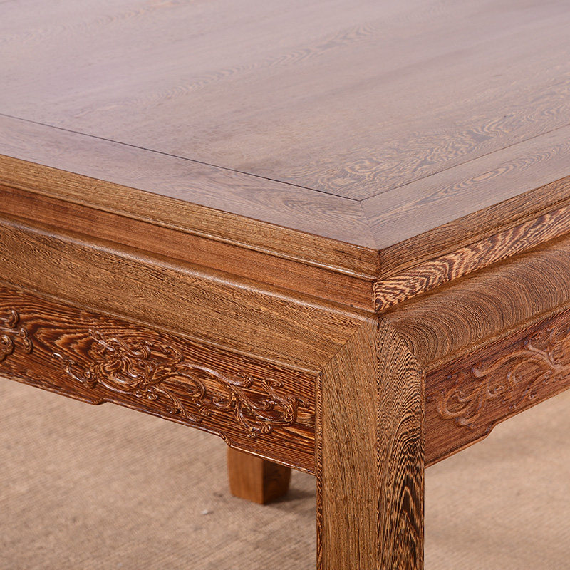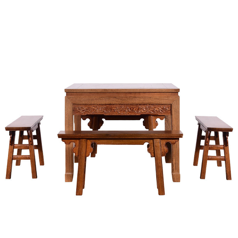 红木家具鸡翅木雕花八仙桌中式小户型实木方桌正方形餐桌椅凳组合
