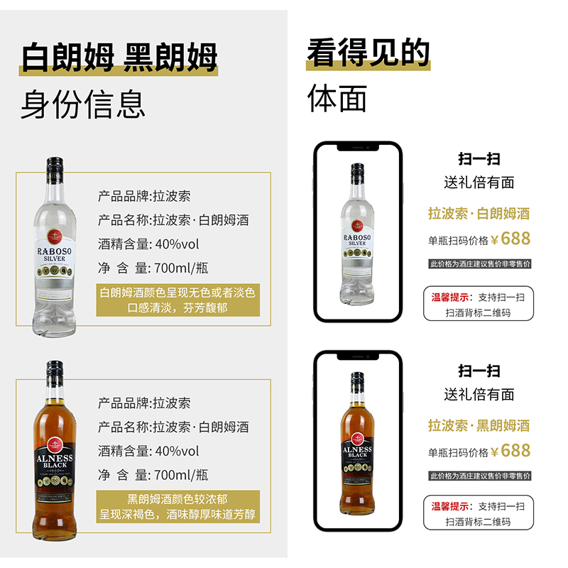 推荐理由:洋酒白朗姆烘焙黑朗姆自由古巴鸡尾酒调酒基酒mojito莫吉托酒正品
