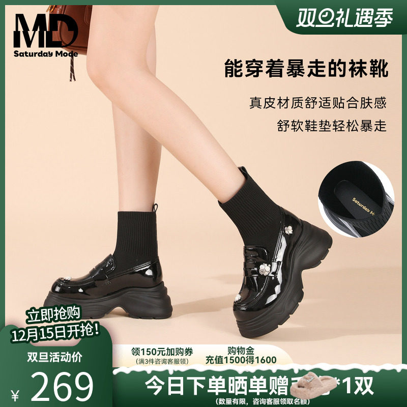 saturdaymode英伦风厚底增高瘦瘦靴2025冬季新款弹力袜靴显瘦短靴