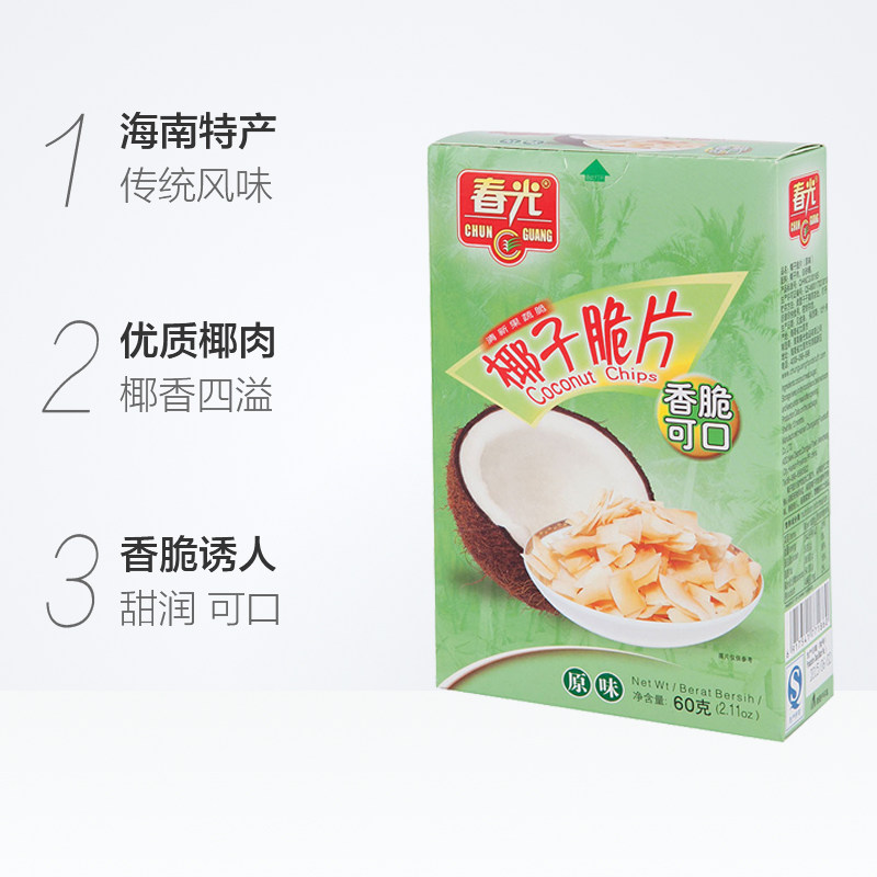 推荐理由:春光原味香脆椰子片 60g*3盒 海南特产椰肉干水果干 休闲零食小吃