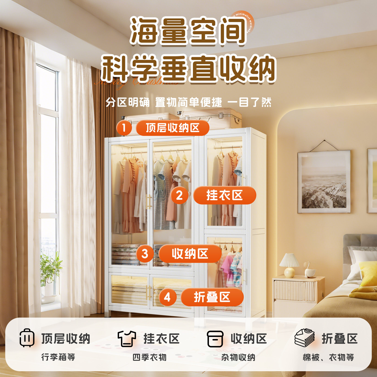 钢制衣柜卧室家用加厚铁艺简易收纳柜子出租房用简易儿童宝宝衣橱
