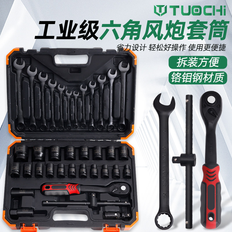 37件套筒扳手棘轮组合全套1/2大飞维修工具汽修修车汽车工具套装