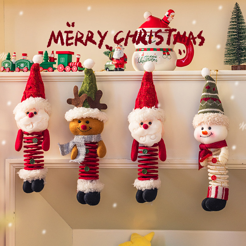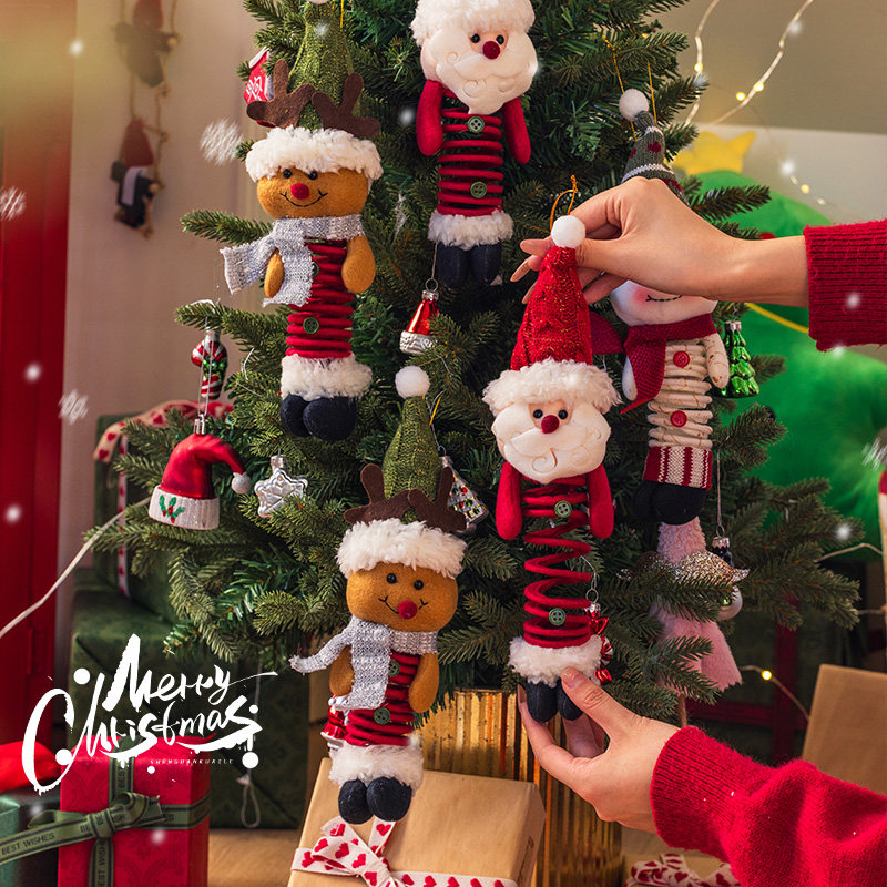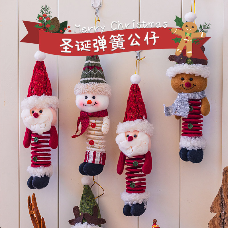 圣诞节装饰品圣诞老人雪人鹿弹簧公仔圣诞树场景布置挂件道具挂饰