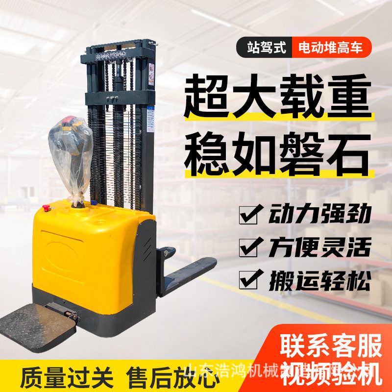 步行式电动堆高车电动1.5吨液压升降上高车站立式堆垛车厂家