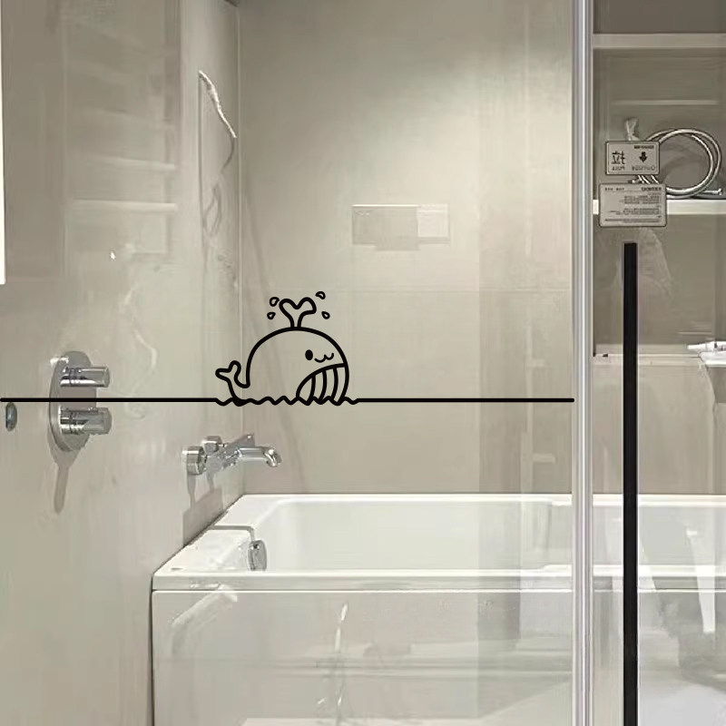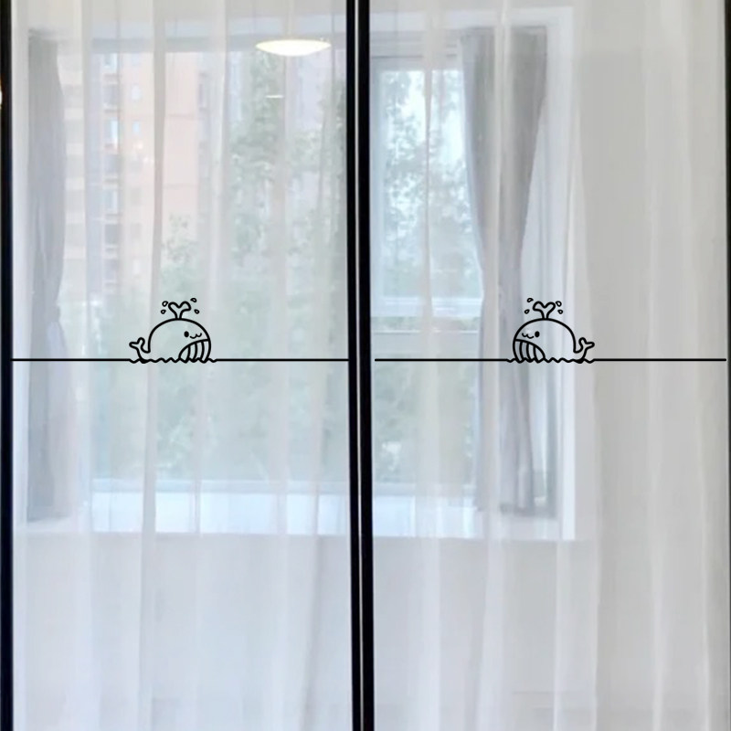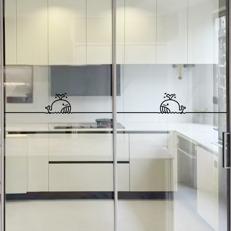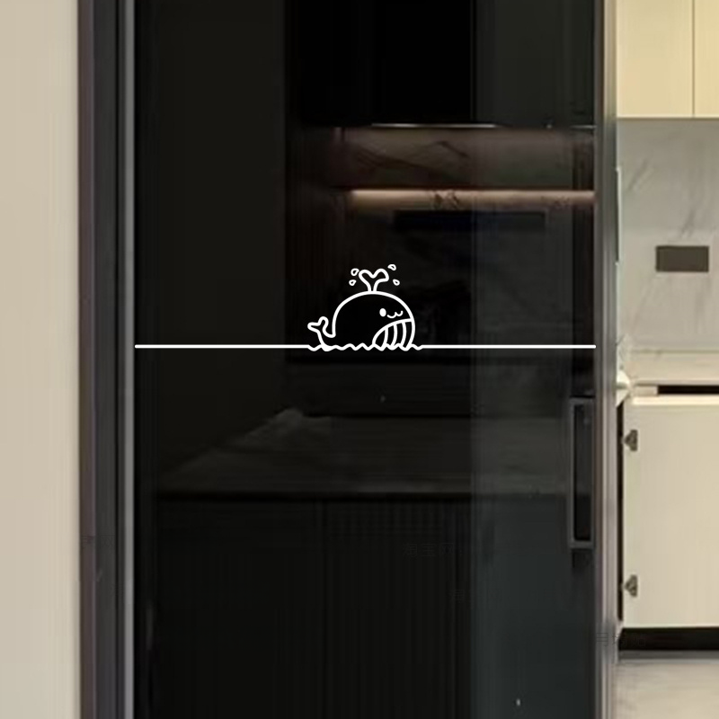 创意小鲸鱼腰线推拉移门装饰贴画阳台客厅厨房玻璃门防撞贴纸窗贴