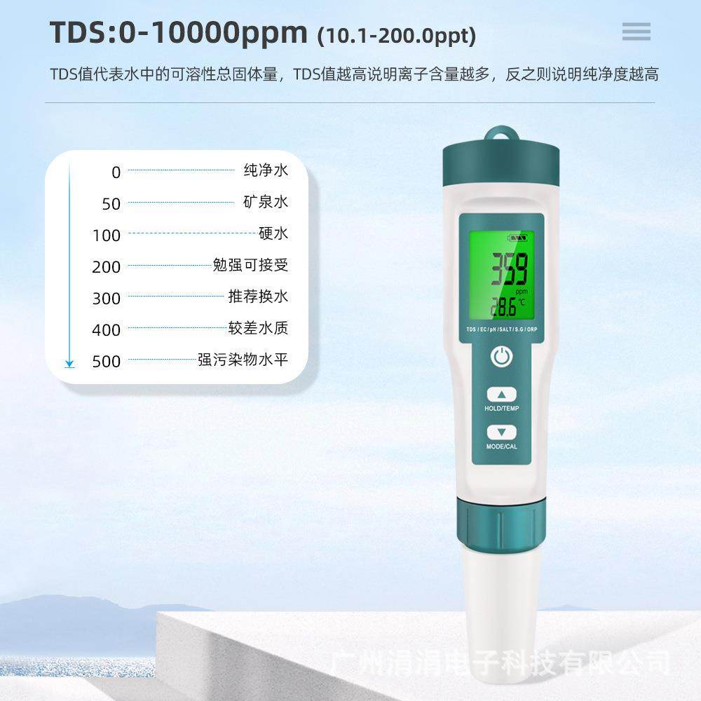 推荐理由:7合1水质测试笔PH计/TDS/EC/ORP盐度S.G温度监测仪水质分析仪背光