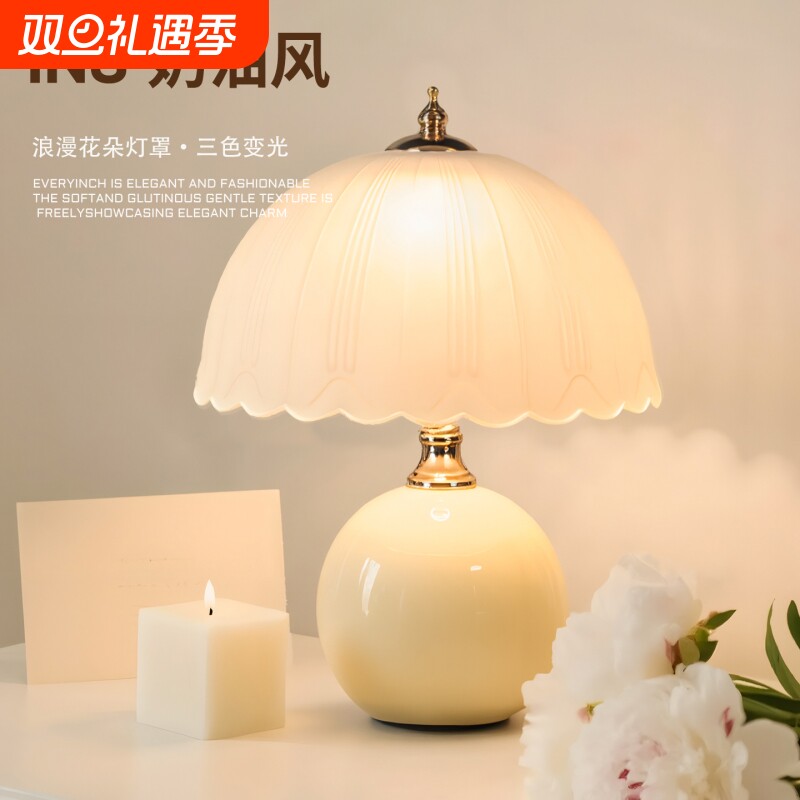 奶油风台灯卧室创意床头柜轻奢2025高级感主卧温馨结婚氛围小夜灯