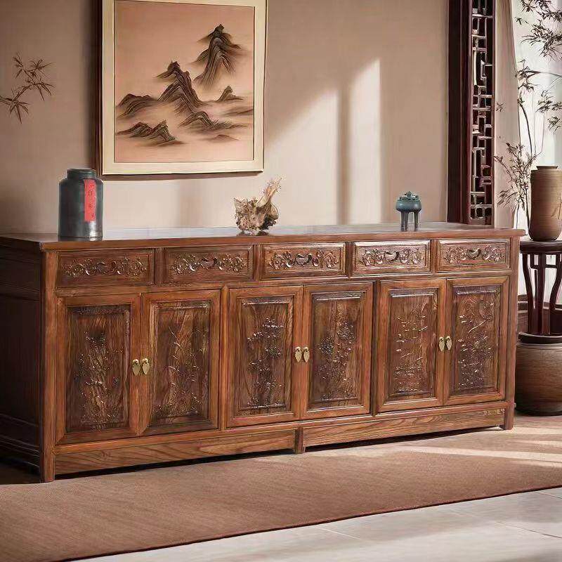 全实木新中式餐柜南榆木靠墙小柜组合一体四门多功能酒店茶水柜