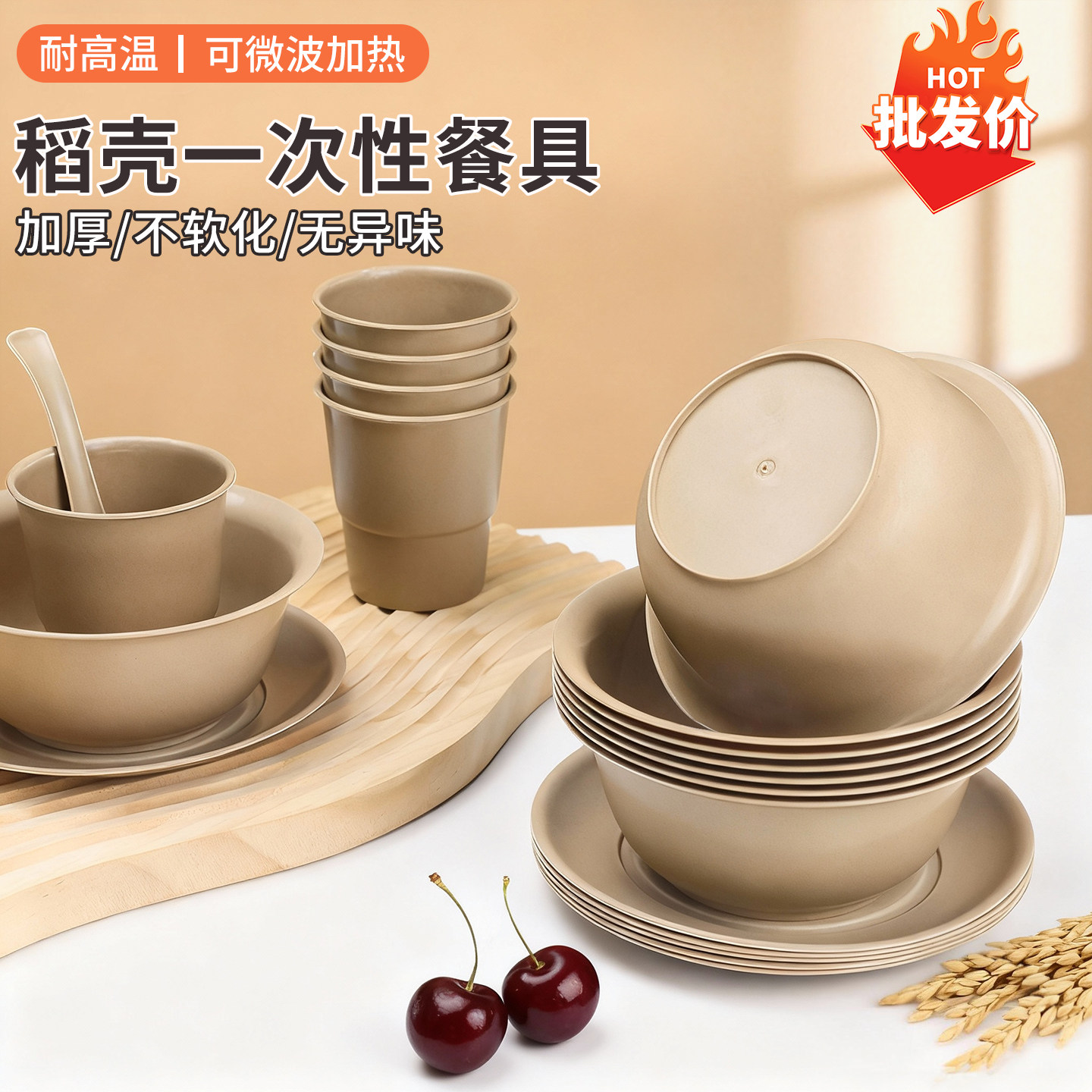 推荐理由:稻壳一次性餐具碗筷套装盘碟水杯勺子食品级野餐火锅饭碗商用批发