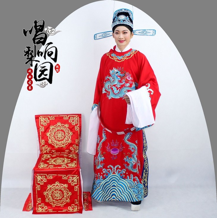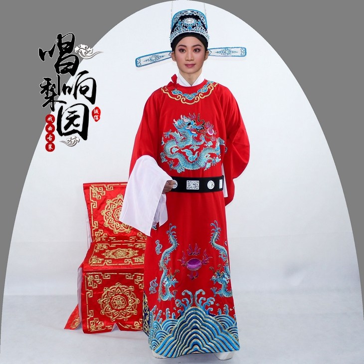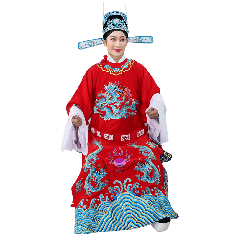 推荐理由:七彩新款越剧黄梅戏戏曲舞台演出服戏剧官帽改良蟒女驸马状元服装