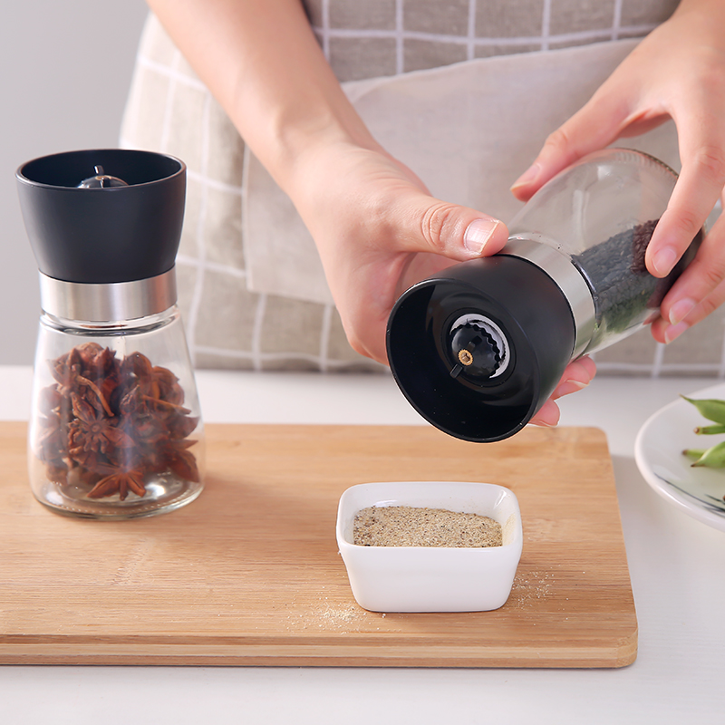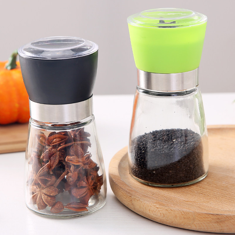 手动玻璃黑胡椒研磨器创意厨房用品花椒磨碎器黑糊椒佐料调料瓶