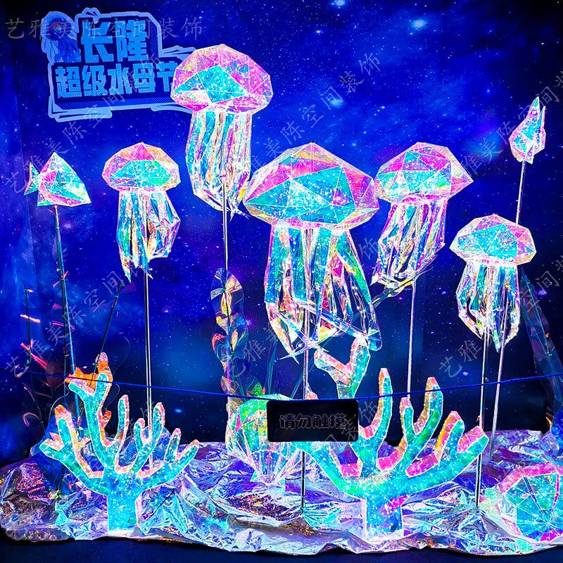 艺雅夏季海洋主题橱窗美陈装饰道具幻彩水母珊瑚商场dp点摆件布置