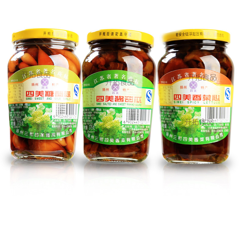 扬州三和四美酱菜瓶装375克嫩萝卜/乳黄瓜/什锦菜/香菜心早餐小菜