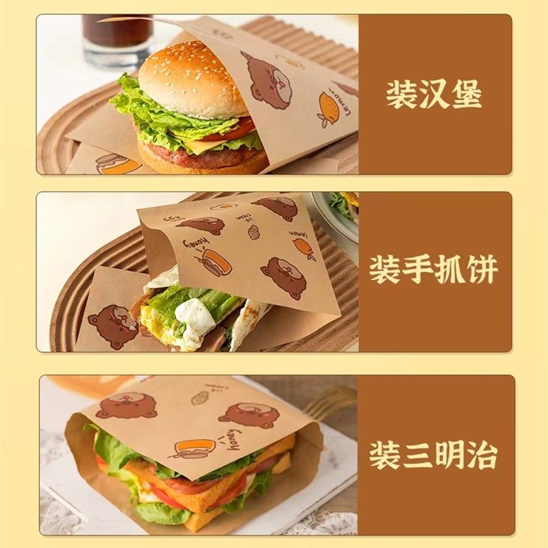 推荐理由:露营早餐三明治包装纸袋防油水家用汉堡烘焙吐司三文治纸袋