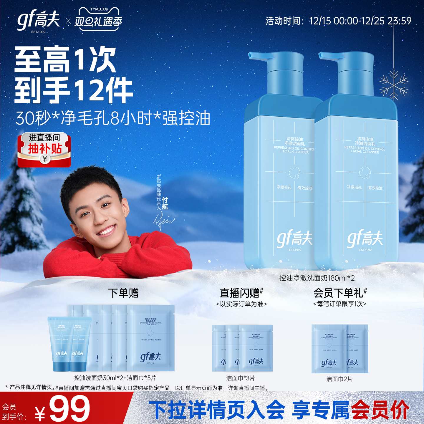 gf高夫男士洗面奶专用控油清爽氨基酸洁面乳水杨酸护肤品官方正品