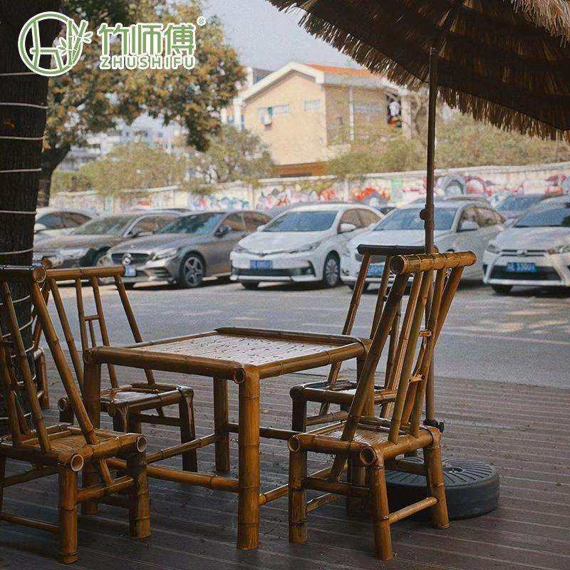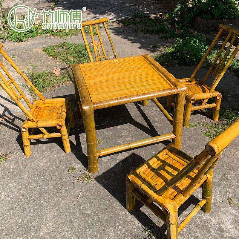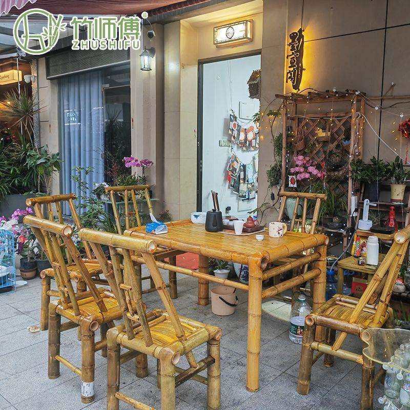 户外庭院竹子桌椅全套围炉煮茶桌椅套件火锅八仙桌正长方形竹椅子