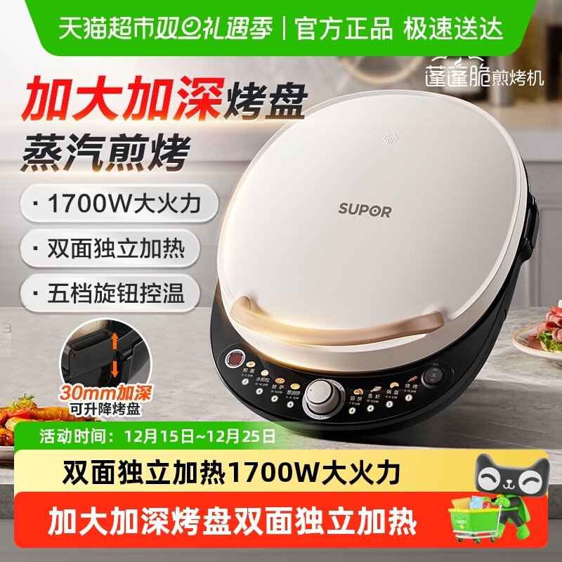 苏泊尔电饼铛家用加大加深多功能双面加热煎饼烙饼锅蒸汽烹饪