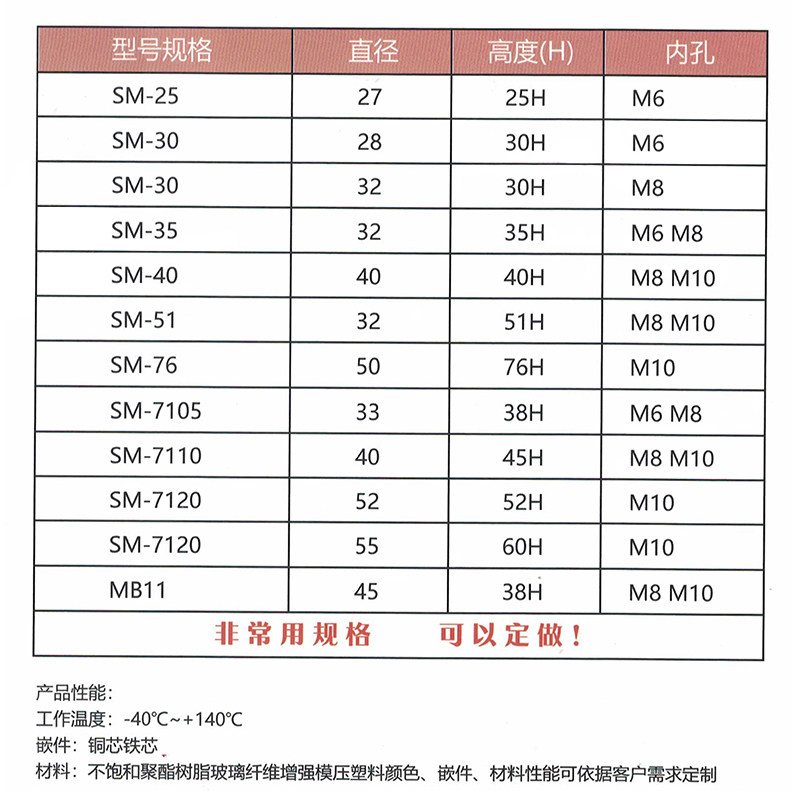 低压SM绝缘子红色高强度绝缘柱25/30/35/40/51/76/7105/7110/7120