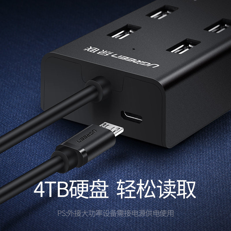 绿联usb扩展器转接头一拖七多接口孔hub电脑笔记本外接U盘打印机鼠标加长线转换器多用功能插口七7口集分线器