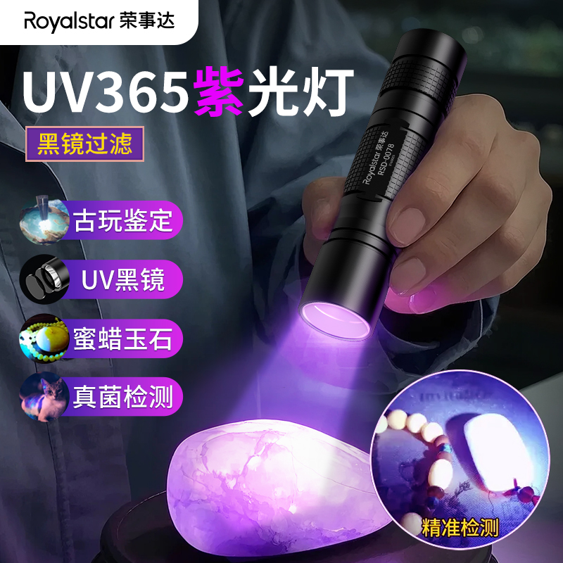 荣事达365nm紫光灯玉石鉴定专用手电鉴别翡翠验钞紫外线蔬菜专用