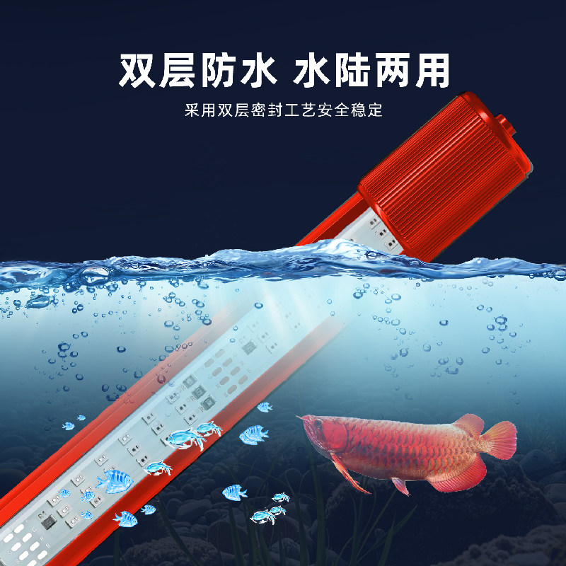 鱼缸灯led灯防水专用照明潜水灯三排RGB智能定时七彩变色灯水下灯