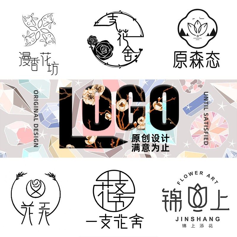 花店logo设计盆栽花圃花卉绿植花艺服务周边包装招牌店标水印门头