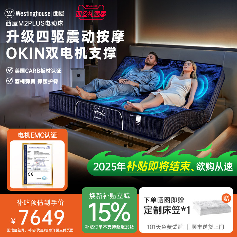 政府补贴西屋M2Plus电动床护腰震动按摩床垫多功能家用卧室智能床