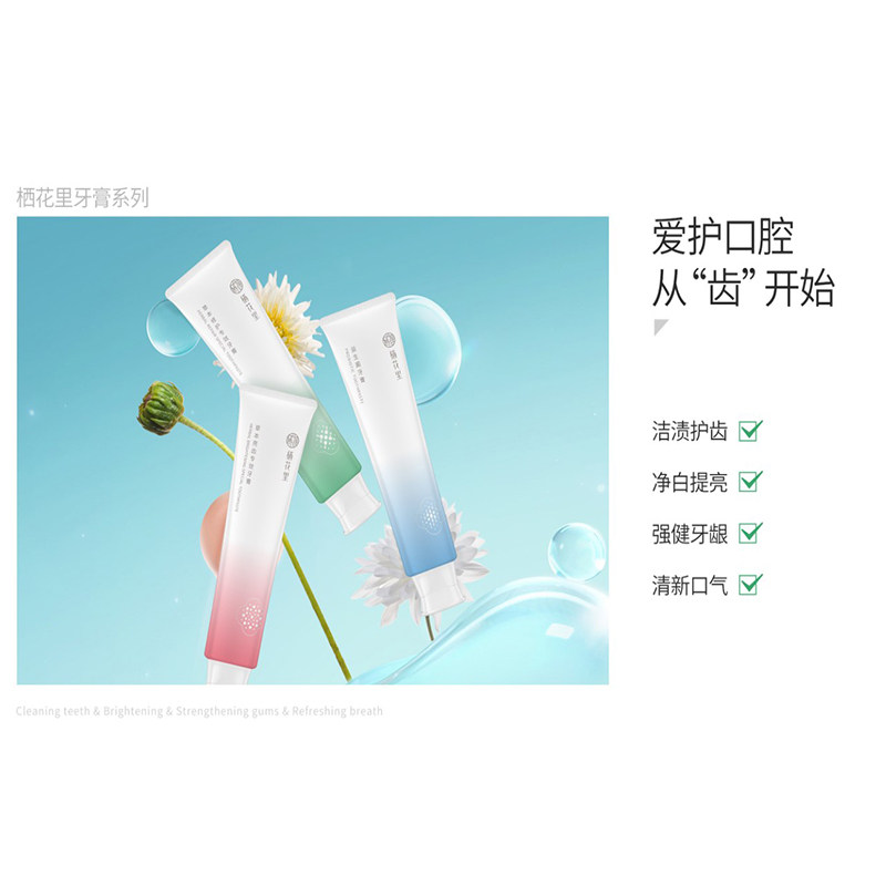轻素栖花里牙膏旗舰店官方正品草本修护亮齿清新口气益生春素小皙