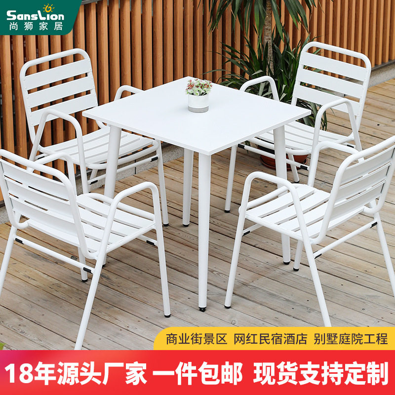 户外桌椅铝合金休闲桌椅室外庭院阳台简约桌椅商业街奶茶店餐桌椅
