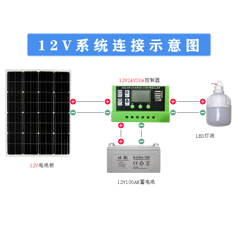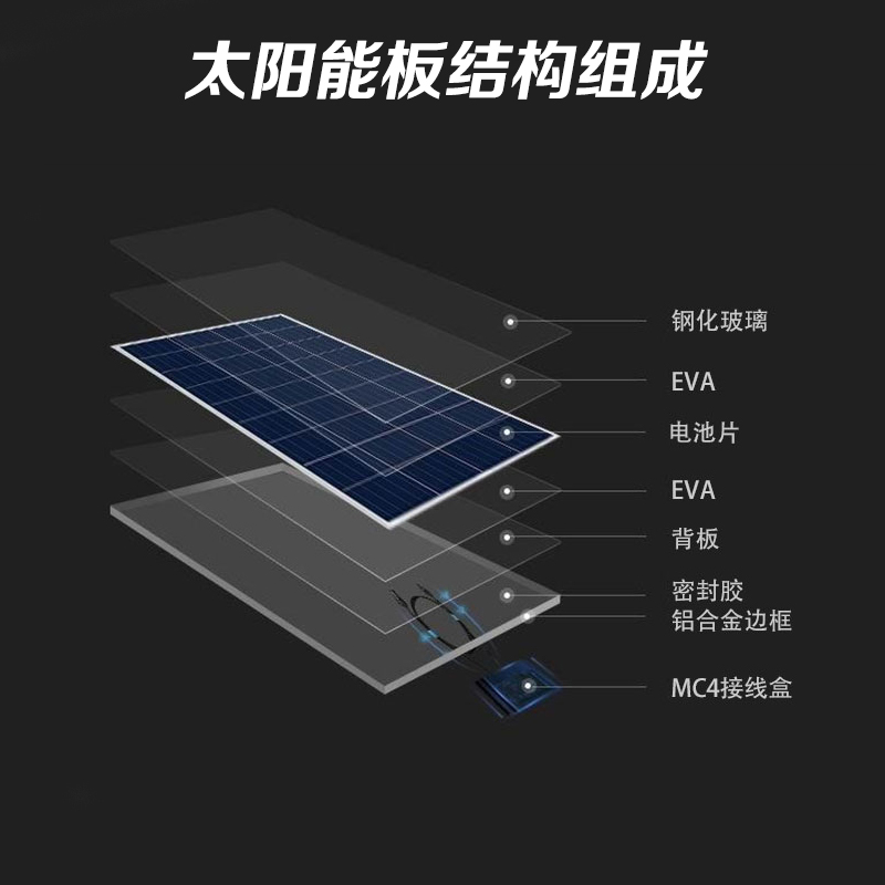 单晶太阳能板100W光伏板12V充电板200W发电板家用300瓦电池板24伏