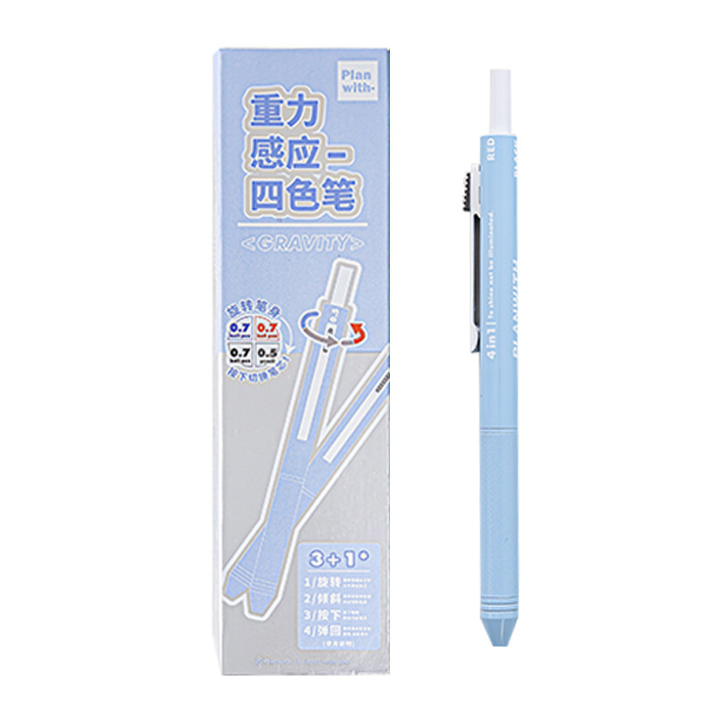 Planwith四合一黑科技重力感应笔按动中性笔学生用多功能多色笔高颜值按压式红黑水笔蓝圆珠笔自动铅笔签字笔
