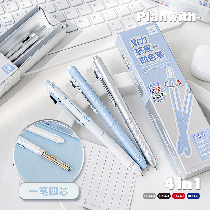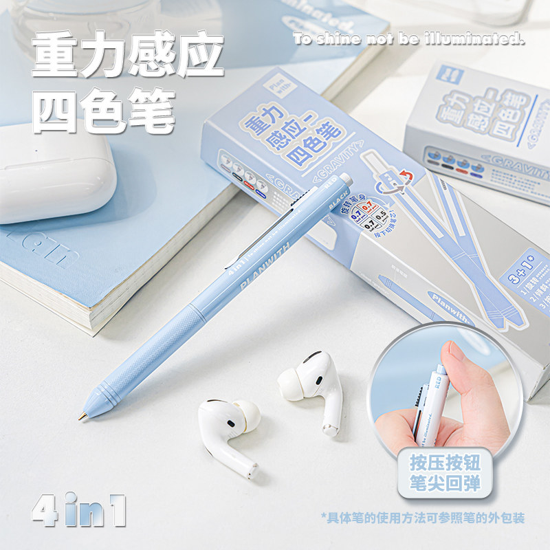 推荐理由:Planwith四合一黑科技重力感应笔按动中性笔学生用多功能多色笔高颜值按压式红黑水笔蓝圆珠笔自动铅笔签字笔