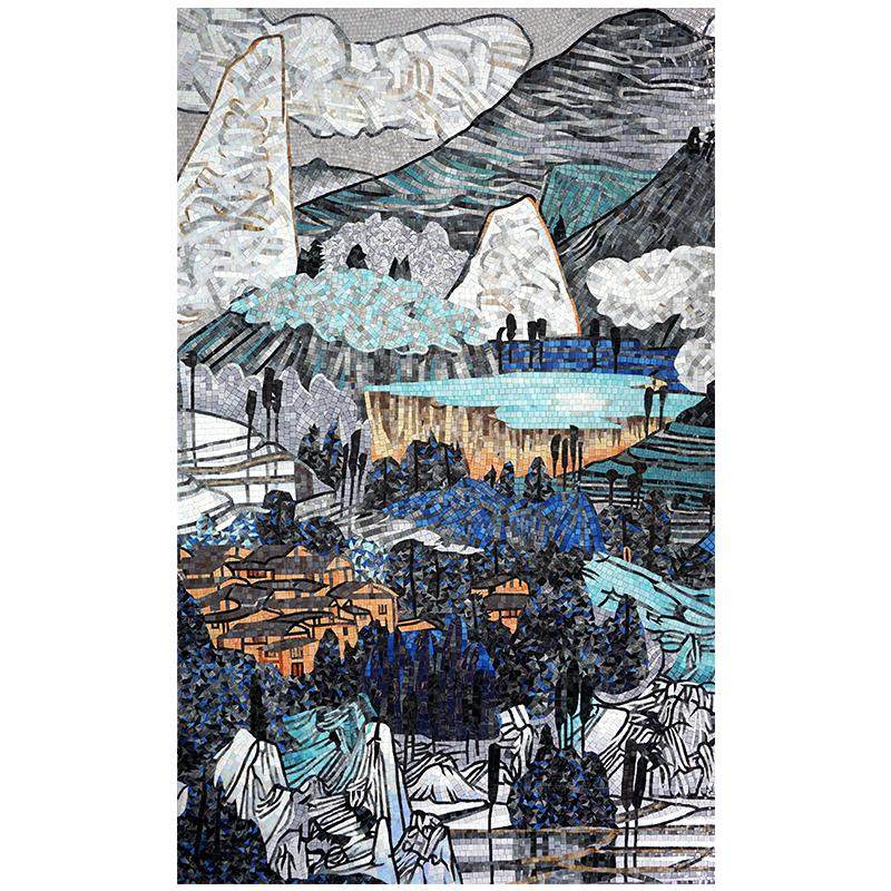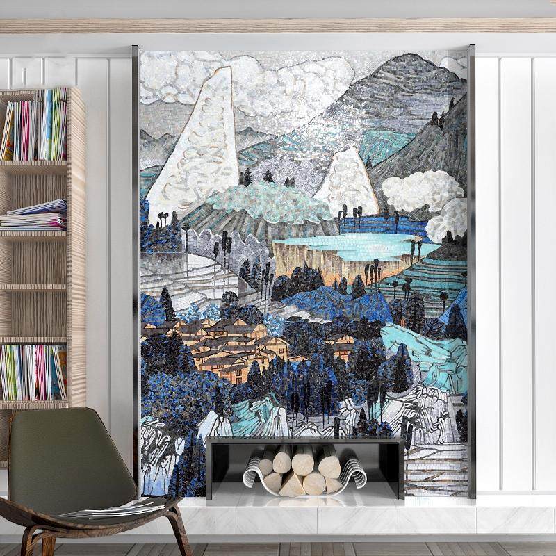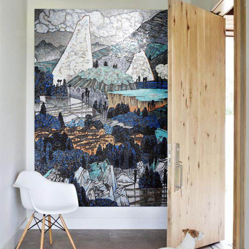 玻璃马赛克瓷砖精剪画艺术拼图客厅山水画电视背景墙玄关拼花壁画