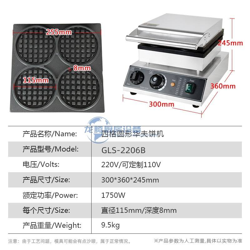 华夫饼机商用圆形浅齿电热松饼格子饼机器窝夫饼炉四格圆形华夫炉