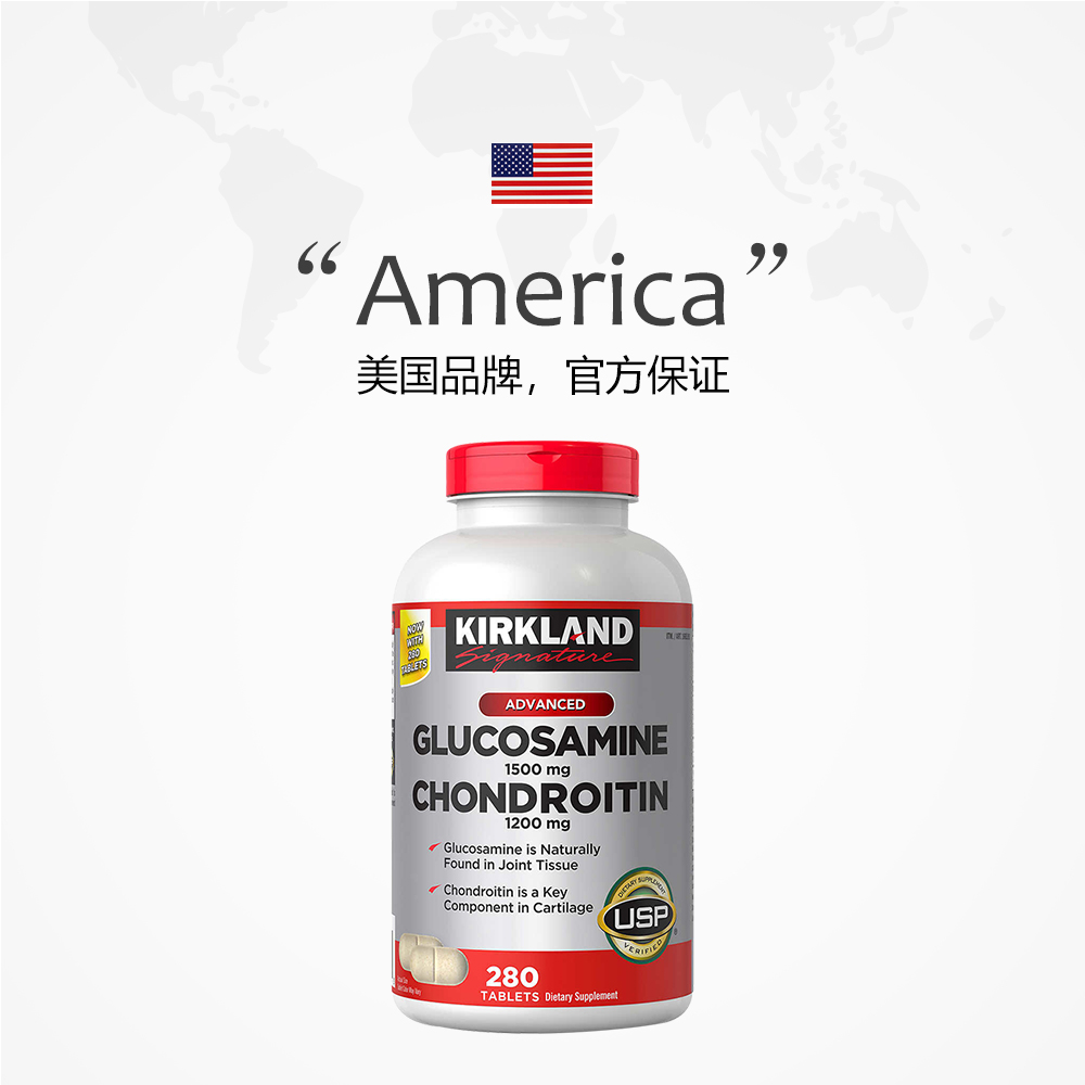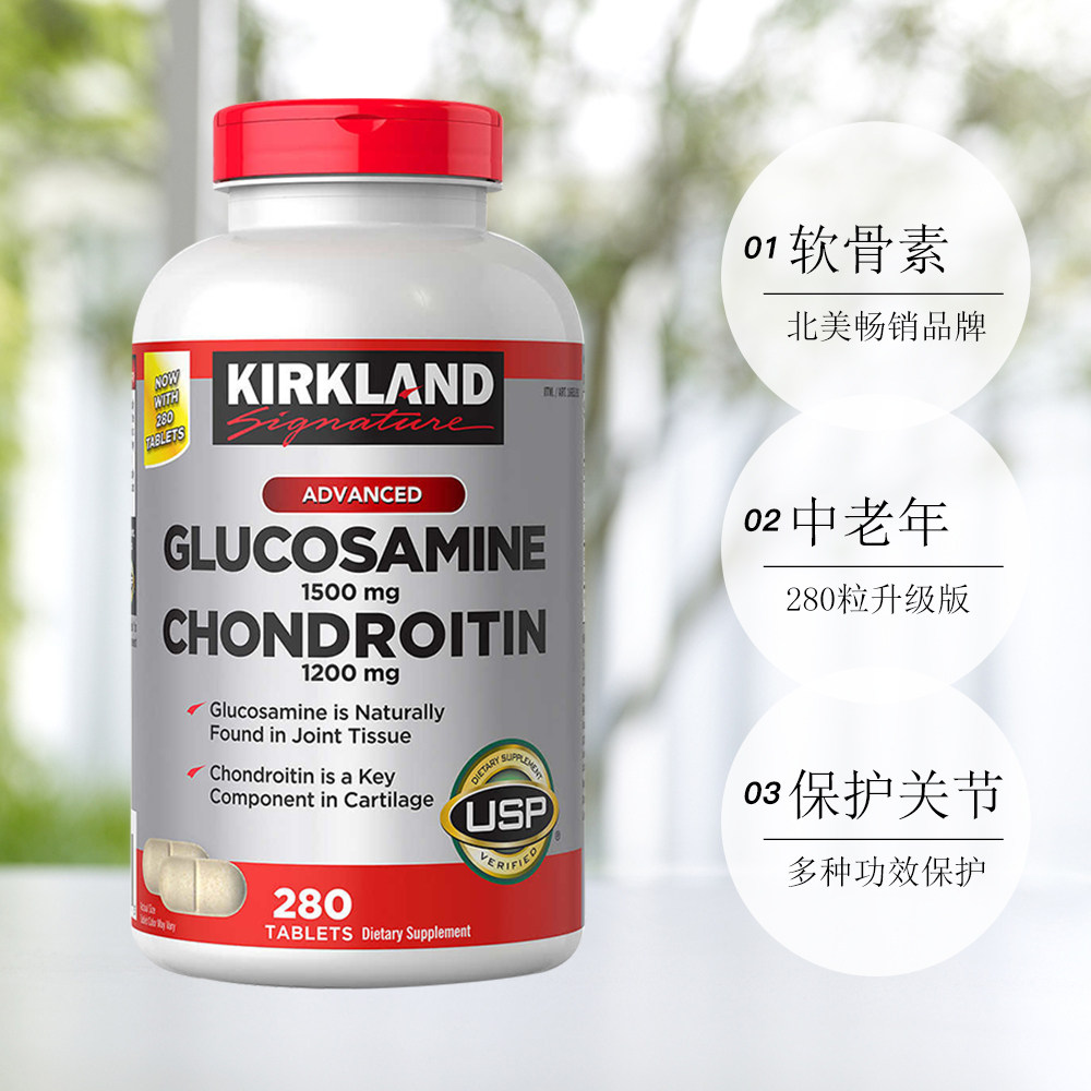 【自营】美国kirkland柯克兰氨糖软骨素氨基葡萄糖氨糖钙片280粒