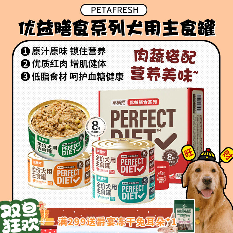 【旺财】petafresh派膳师狗罐头优益膳食宠物主食罐成幼犬果蔬4罐