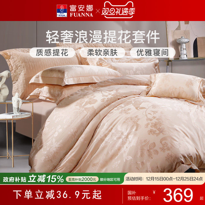 富安娜轻奢高级感提花纯棉床单四件套床上被套全棉床笠结婚庆床品