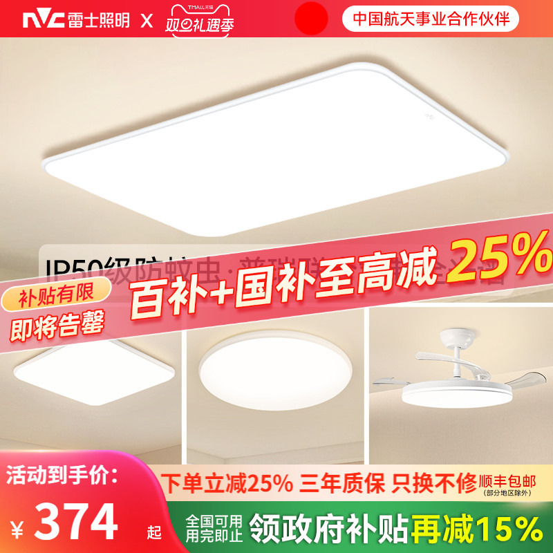 雷士照明小白灯全光谱护眼吸顶灯客厅主灯卧室灯2025新款全屋灯具